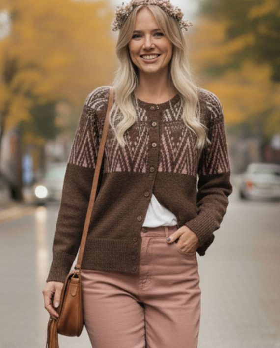 Cárdigan con jacquard en delantera y mangas