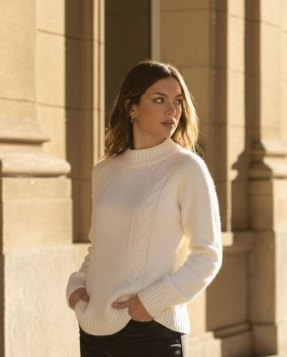 Artículo: 442Sweater con trenzas en delantera y escote media polera.