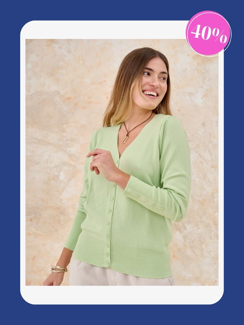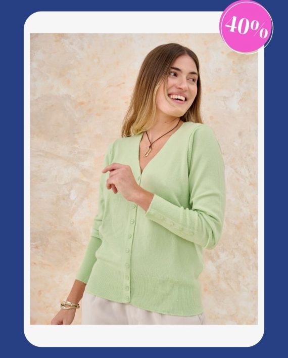 Saquito con botones, elástico y puños altos. Detalle de botones en manga.