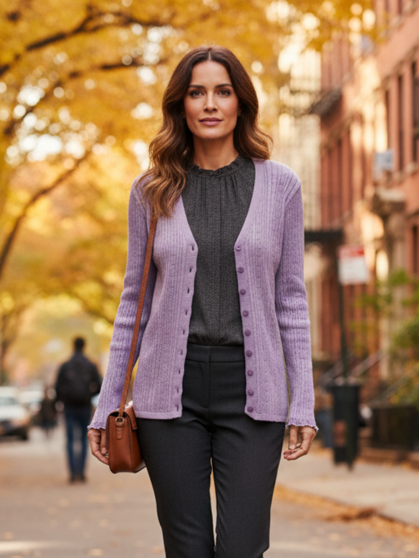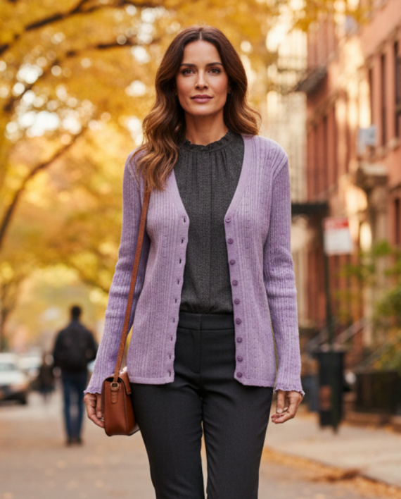 Cárdigan largo con puños festoneados.