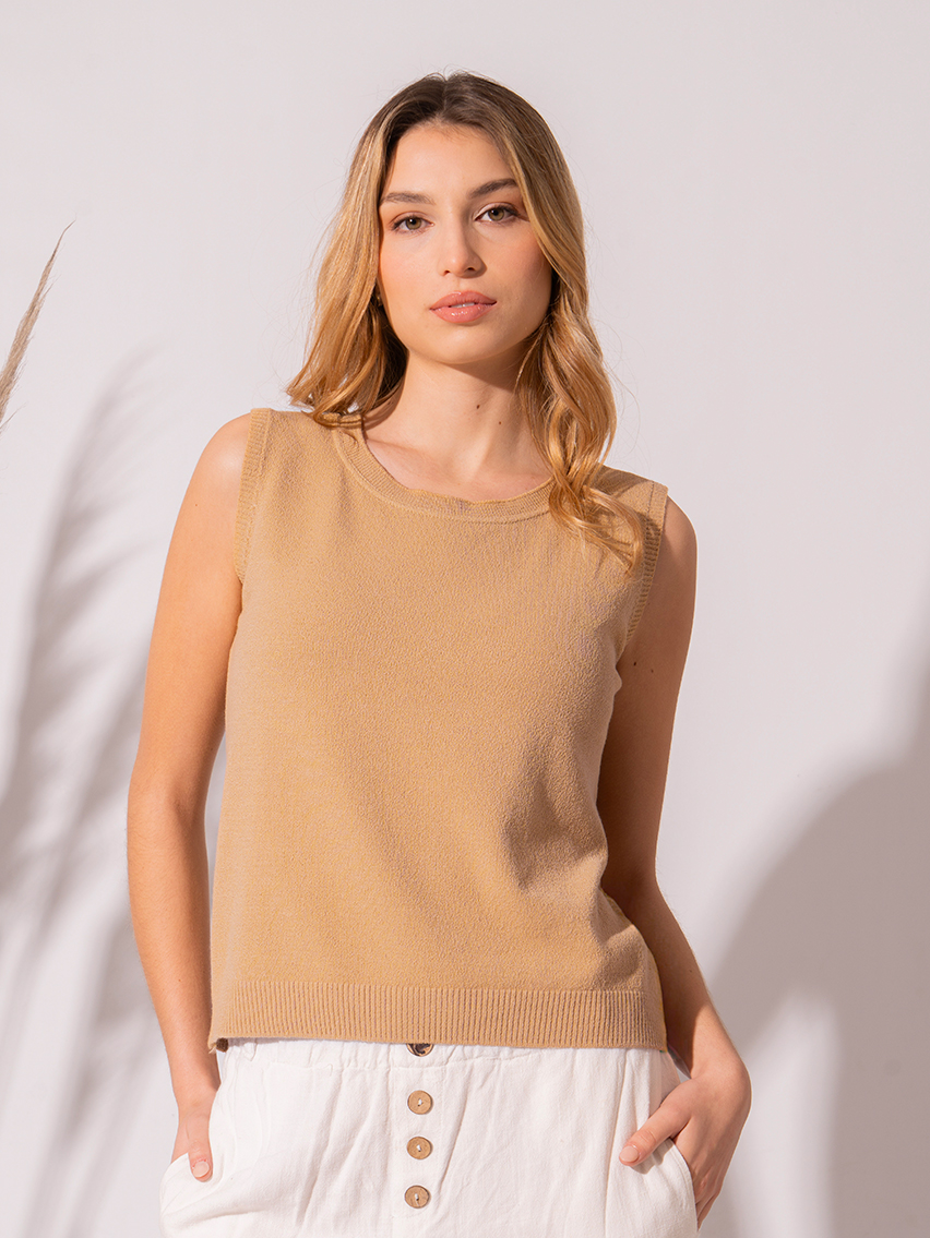 Artículo: 303Musculosa tejida con tajo en la espalda.