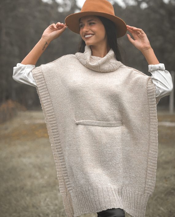 Poncho con cuello volcado y lazo.