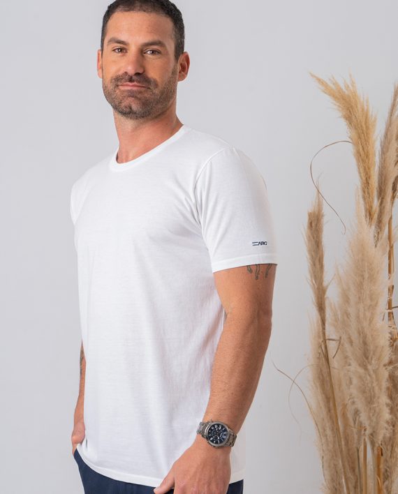 Artículo: 574Remera básica cuello redondo y bordado de bandera Argentina.