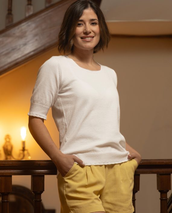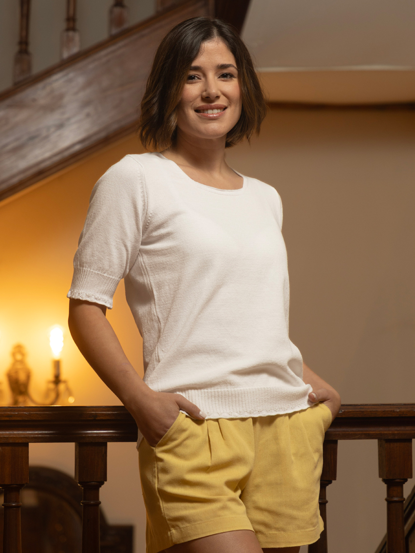 Artículo: 644Remera tejida con festón en elástico y en puños.