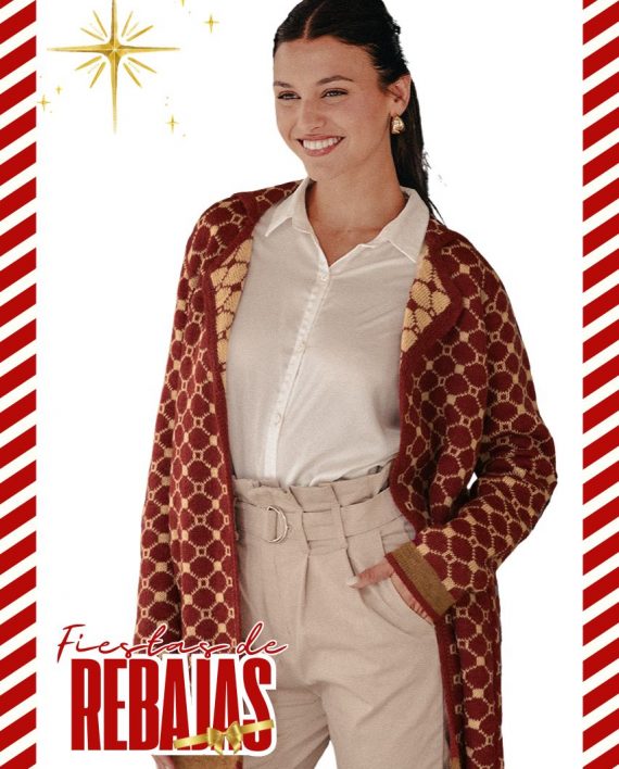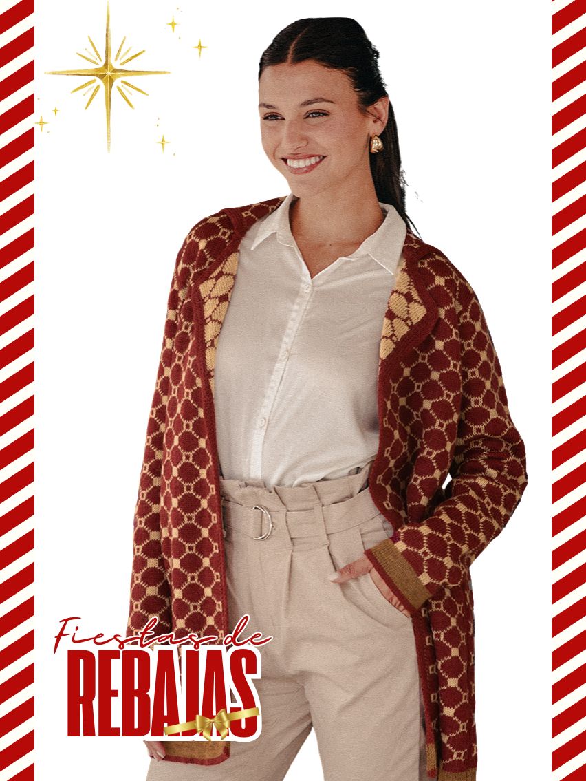 Artículo: 267Saco largo jacquard con cuello chomba.