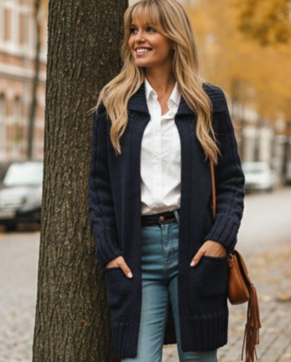 Saco con cuello volcado y bolsillos. Manga con trenzas