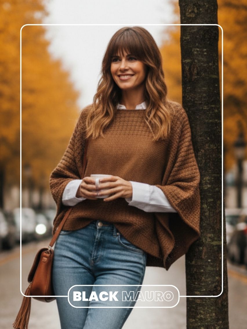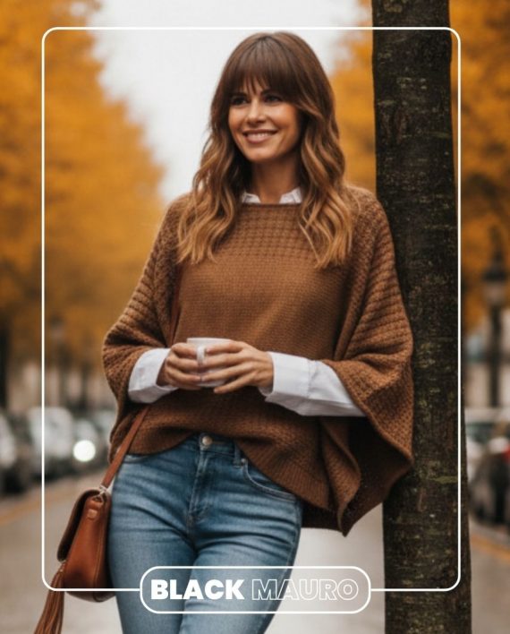 Sweater oversize con punto fantasía y escote redondo.