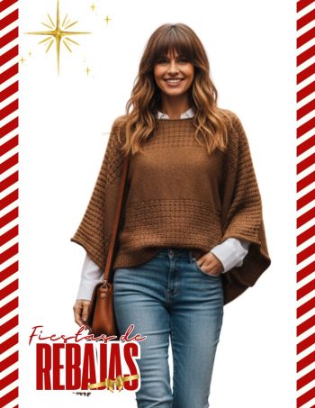 Sweater cuello redondo con puno y elástico alto y trabajo de tejido de punto.