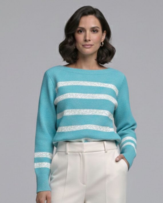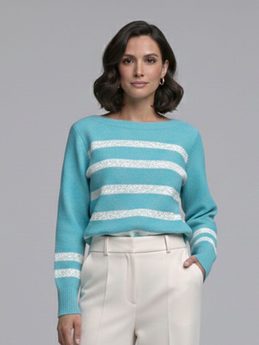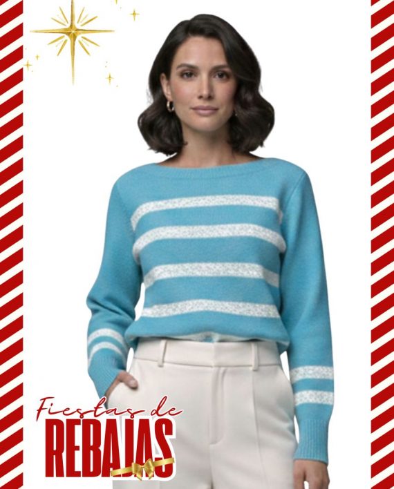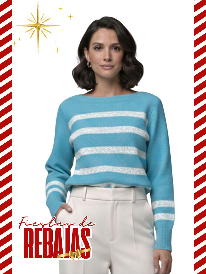 Artículo: 614Sweater rayado en delantera con escote bote.