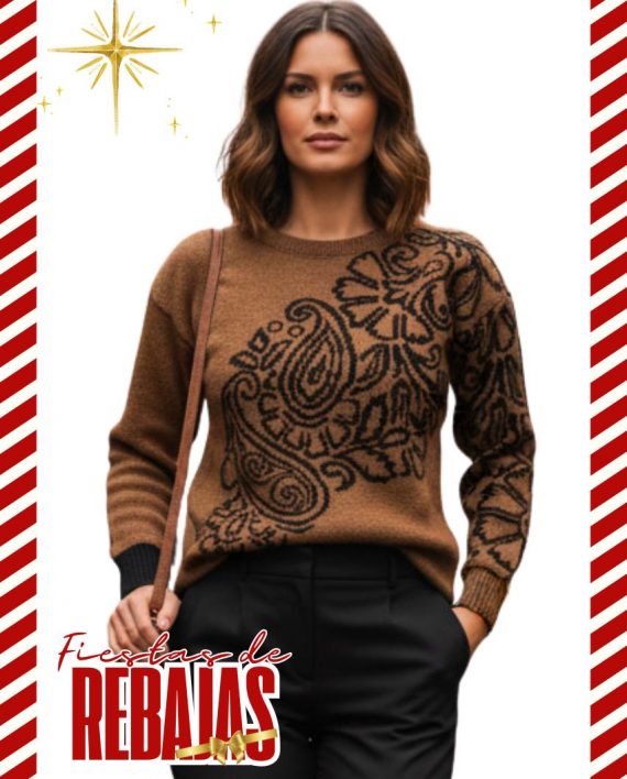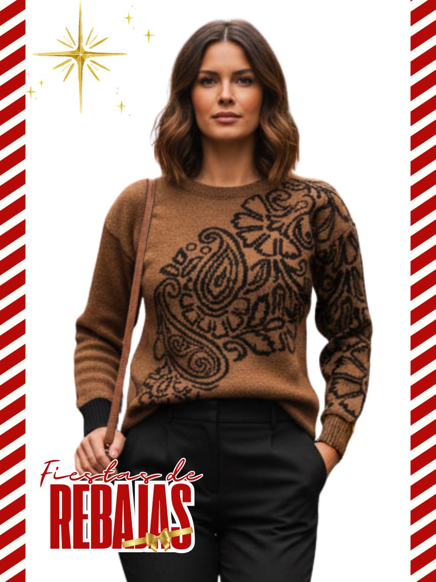 Artículo: 251Sweater cuello redondo, con jacquard en delantera y manga