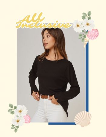 Sweater con escote bote y frunce en mangas.