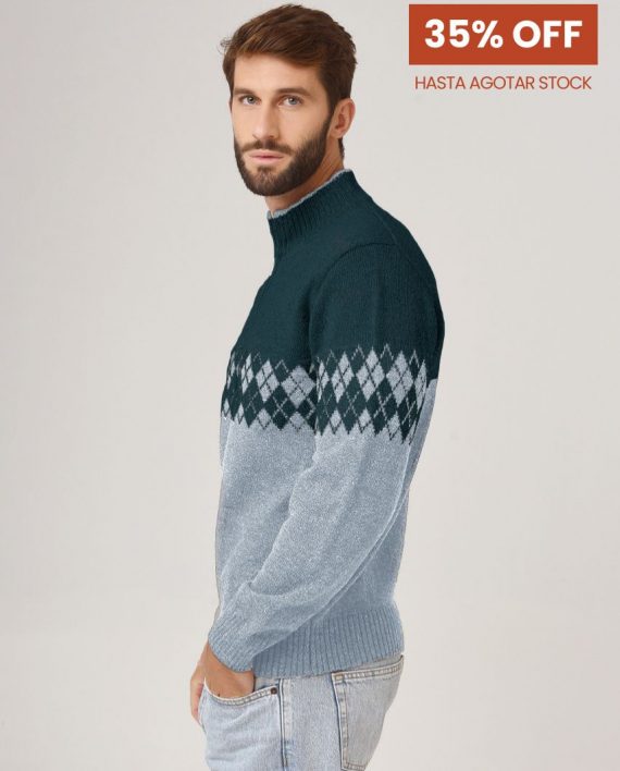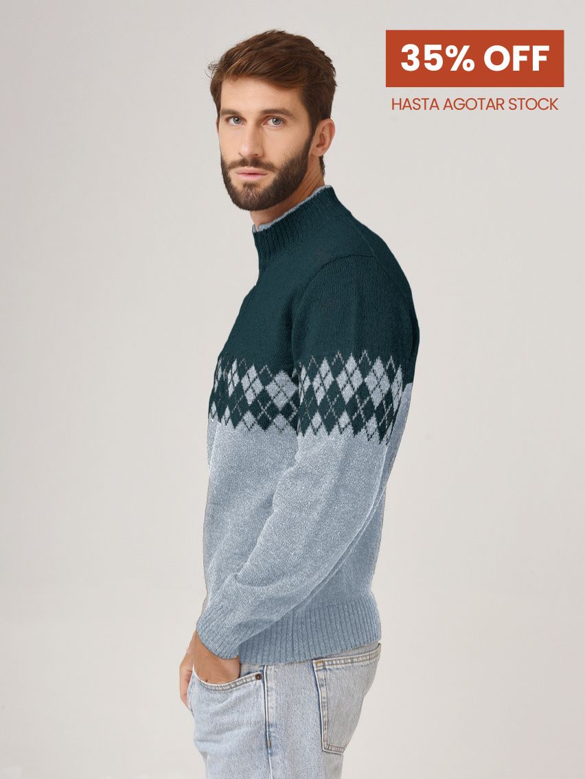Sweater con cierre en cuello y jacquard.