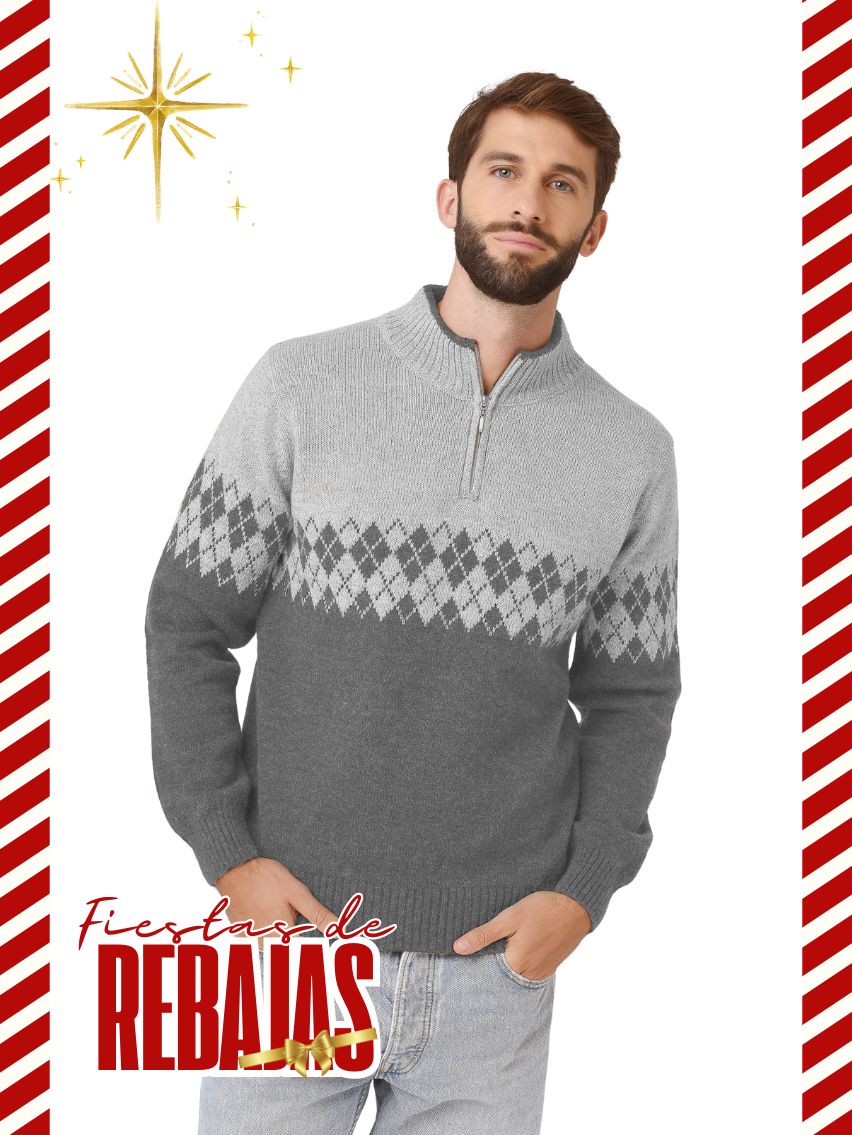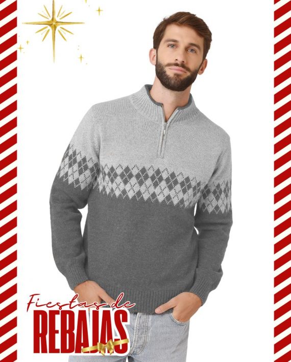 Artículo: 440Sweater con cierre en cuello y jacquard.