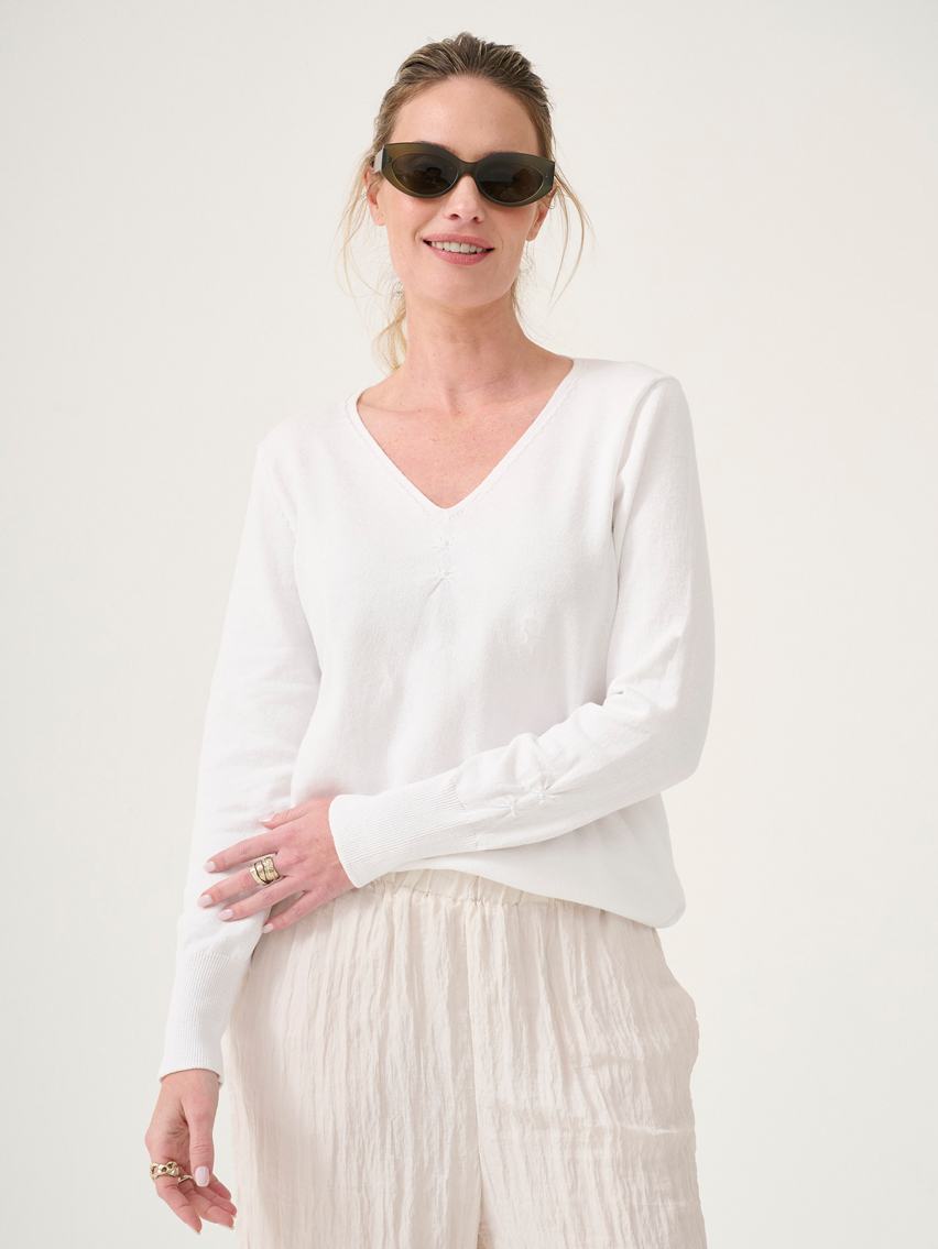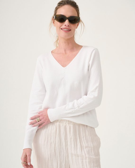 Artículo: 632Sweater con perla en escote “V” y perlas en puños.