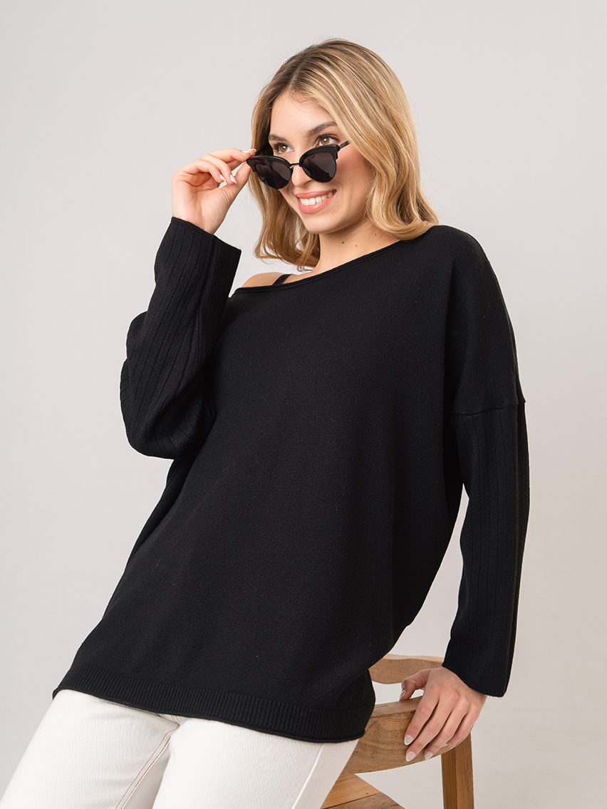 Artículo: 323Sweater oversie con escote bote y tajo en lateral .