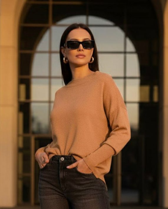 Artículo: 321Sweater con puño alto, escote bote y tajo en los laterales.