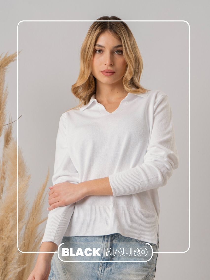 Sweater con escote chomba y tajo en lateral.
